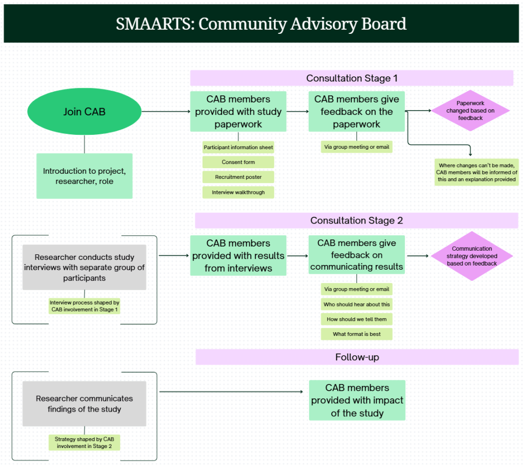- At the very end of the project, after the study’s results have been shared in whatever way the team decides on, Ruth will give you an update on what happened as a result. For example, did anything change? You will be informed of any updates.